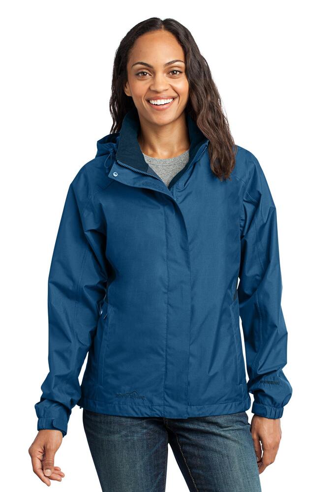 From misty mornings to evening downpours, this fully seam sealed, colorblock jacket will help keep you dry and protected from whatever Mother Nature throws at you. 5000MM fabric waterproof rating, 5000G/M2 fabric breathability rating, detachable hood with drawcord and toggles for adjustability, storm flap with hook and loop closures, front zippered pockets, adjustable tab cuffs with hook and loop closures and an open hem with drawcord and toggles. Contrast Eddie Bauer logo on hem. WeatherEdge® logo on left sleeve. 100% polyester dobby shell, mesh body lining, 100% nylon accents.