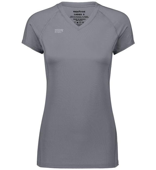 * 84% polyester/16% spandex knit with color secure(r) technology that helps prevent dye migration * 90% polyester/10% spandex wicking mesh underarm and sleeve inserts with color secure(r) technology that helps prevent dye migration * 4-Way stretch properties allow for increased mobility * Wicks moisture * Tag-free label * High 5 logo on right chest * V-neck collar * Strategically placed seams for maximum mobility and comfort * Raglan sleeves * Designed to conform to NFHS specifications for a solid jersey